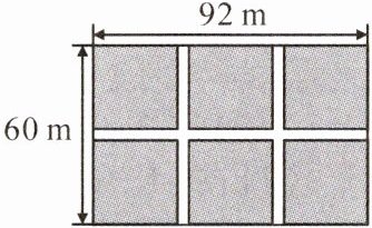 17. (衡阳石鼓区月考)如图,在一块长 $92m$、宽 $60m$ 的矩形耕地上挖三条水渠(水渠的宽都相等),水渠把耕地分成 $6$ 个矩形小块(阴影部分).如果 $6$ 个矩形小块的面积和为 $5310m^2$,那么水渠应挖多宽? 若设水渠应挖 $x m$ 宽,则下面所列方程中正确的是()