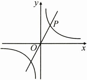 21. (8分)如图,正比例函数$y_{1}=2x$的图象与反比例函数$y_{2}=\frac{k}{x}$的图象有一个交点为$P(2,m)$.