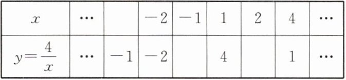 4. 画出反比例函数$y= \frac {4}{x}$的图象.