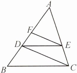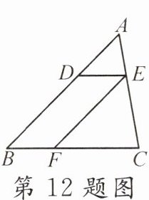 12. (常德武陵区期中)如图,在 $ \triangle A B C $ 中,$ D $,$ E $,$ F $ 分别是边 $ A B $,$ A C $,$ B C $ 上的点,$ D E // B C $,$ E F // A B $,且 $ A D : D B = 3 : 5 $,那么 $ C F $ 与 $ C B $ 之比是______.