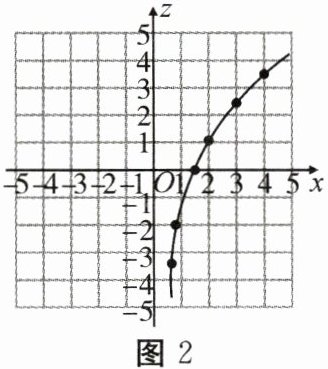 (2) ① 由题意知点 $A$ 的坐标为 $(x, x-z)$,$\therefore x(x-z)=2$,$\therefore z=x-\frac{2}{x}$。② 图略。性质:当 $x>0$ 时,$z$ 随 $x$ 的增大而增大;当 $x<0$ 时,$z$ 随 $x$ 的增大而增大。函数图象与 $z$ 轴无交点。(答案不唯一)