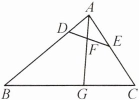 13. 如图,在$\triangle ABC$中,点$D$,$E分别在边AB$,$AC$上,$\angle AED = \angle B$,射线$AG分别交线段DE$,$BC于点F$,$G$,且$\frac{AD}{AC} = \frac{DF}{CG}$.