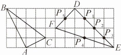 14. (怀化溆浦县月考)如图,在边长为1的小正方形组成的网格中,$\triangle ABC和\triangle DEF$的顶点都在格点上,$P_{1},P_{2},P_{3},P_{4},P_{5}是\triangle DEF$边上的5个格点,请按要求完成下列各题: