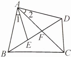 13. 如图,在四边形ABCD中,AC,BD相交于点F,点E在BD上,且$\frac {AB}{AE}= \frac {BC}{ED}= \frac {AC}{AD}$.