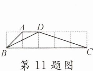 11. 如图,四边形ABCD的顶点在正方形网格线的交点上,则$∠BDC$的度数为____.
