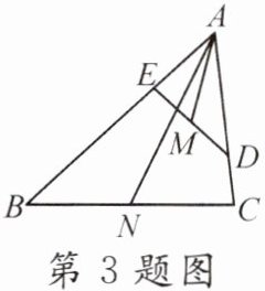 3. 如图,点D,E分别在$\triangle ABC$的边AC,AB上,$\triangle ADE \backsim \triangle ABC$,M,N分别是DE,BC的中点. 若$\frac { A M } { A N } = \frac { 1 } { 2 }$,则$\frac { S _ { \triangle A D E } } { S _ { \triangle A B C } }$的值是______.