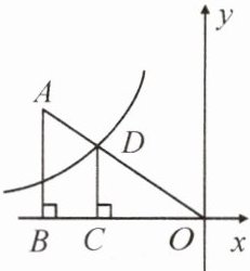 14. 如图,在平面直角坐标系中,$Rt \triangle ABO$的顶点O与原点重合,顶点B在x轴的负半轴上,$\angle A B O = 90 ^ { \circ }$,OA与反比例函数$y = \frac { k } { x } ( x < 0 )$的图象交于点D,且$O D = 2 A D$,过点D作x轴的垂线交x轴于点C. 若$S _ { 四边形 A B C D } = 10$,求k的值.