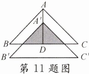 11. (永州东安县期末)如图,将$\triangle ABC$沿边BC上的中线AD平移到$\triangle A ^ { \prime } B ^ { \prime } C ^ { \prime }$的位置. 已知$\triangle ABC$的面积为16,阴影部分三角形的面积为9. 若$A A ^ { \prime } = 1$,则$A ^ { \prime } D$的长为()