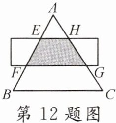 12. 如图,$\triangle ABC是面积为18 \mathrm { cm } ^ { 2 }$的等边三角形,被一平行于BC的矩形所截,AB被截成三等份,则图中阴影部分的面积为______$\mathrm { cm } ^ { 2 }$.