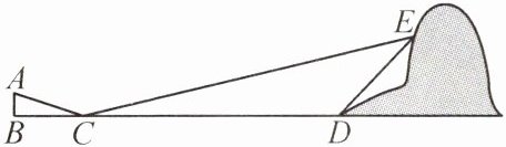 9. 如图,小华和同伴春游时,发现在某地小山坡的点E处有一棵小桃树,他们想利用皮尺、测倾器和平面镜测量小桃树E到山脚下的点D之间的距离(即DE的长度),小华站在点B处,让同伴移动平面镜至点C处,此时小华在平面镜内可以看到点E,且测得BC= 6m,CD= 24m,∠CDE= 135°. 已知小华的身高AB= 1.5m,请根据以上数据,求DE的长度. (结果保留根号)