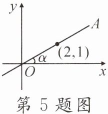 5. 如图, 在平面直角坐标系中, 直线$OA过点(2,1)$, 则$\sin \alpha$的值是______.