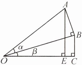 (3) 证明:$\because \sin \alpha+\sin \beta=\frac{A B}{O A}+\frac{B C}{O B}$,$\sin (\alpha+\beta)=\frac{A E}{O A}$,且 $O A>O B$,$\therefore \frac{B C}{O B}>\frac{B C}{O A}$,$\therefore \frac{A B}{O A}+\frac{B C}{O B}>\frac{A B}{O A}+\frac{B C}{O A}=\frac{A B+B C}{O A}$。$\because A B+B C>A E$,$\therefore \frac{A B+B C}{O A}>\frac{A E}{O A}$,$\therefore \sin \alpha+\sin \beta>\sin (\alpha+\beta)$。