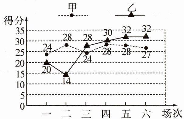 分.(2)请从得分方面分析:这六场比赛中,甲、乙两名队员谁的表现更好.