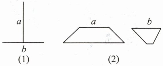 2. 如图,比较线段a,b的长短,再用刻度尺量一下,看看你的观察结果是否正确。