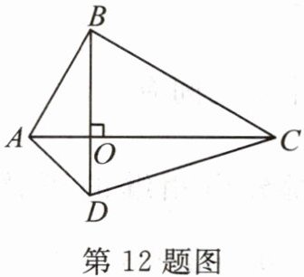 12. 对角线互相垂直的四边形叫作“垂美”四边形,现有如图所示的“垂美”四边形ABCD,对角线AC,BD交于点O.若$AD= 2,BC= 4$,则$AB^{2}+CD^{2}= $