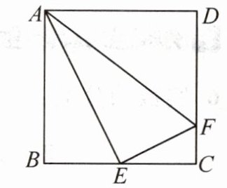 ∵四边形 ABCD 为正方形,$\therefore AB = BC = CD = DA,\angle B=\angle C=\angle D = 90^{\circ}$. 设 $AB = BC = CD = DA = 4a.\because E$ 是 BC 的中点,且 $CF=\frac{1}{4}CD,\therefore BE = EC = 2a,CF = a.\therefore DF = 4a - a = 3a$. 在 $Rt\triangle ABE$ 中,由勾股定理,得 $AE^{2}=AB^{2}+BE^{2}=20a^{2}$. 同理可得,$EF^{2}=EC^{2}+FC^{2}=5a^{2},AF^{2}=AD^{2}+DF^{2}=25a^{2}.\because AE^{2}+EF^{2}=AF^{2},\therefore \triangle AEF$ 为直角三角形.$\therefore \angle AEF = 90^{\circ}$.