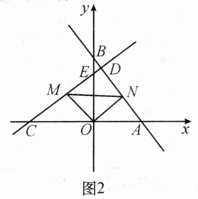 (2)如图2,$M是线段CE$上一动点(不与点$C$,$E$重合),$ON⊥OM交AB于点N$,连接$MN$。