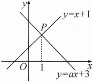 14. (12分)如图,已知函数$y= x+1和y= ax+3$的图象交于点P,点P的横坐标为1.