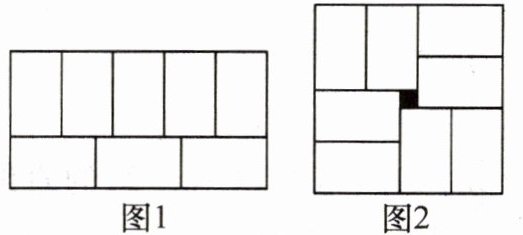 7. 小明在拼图时,发现8个大小一样的长方形恰好可以拼成一个大的长方形(如图1所示),小红看见了说:“我也来试一试.”结果小红七拼八凑,拼成了一个正方形(如图2所示),中间还留下了一个小洞,恰好是边长为2的小正方形,则每个小长方形的面积为 ()
