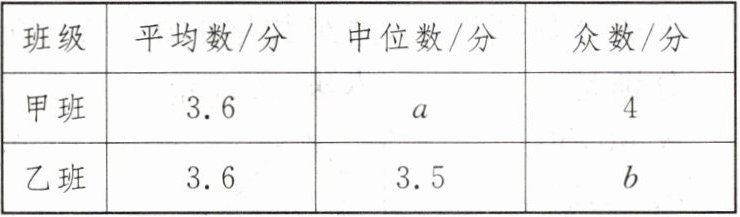 甲、乙两班知识问答成绩统计表