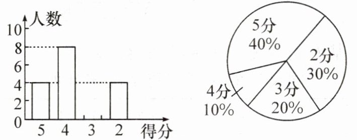 16. (14分)某校举行“中国共产党十九大”知识问答竞赛,每班选20名同学参加比赛.根据答对的题目数量得分,等级分为5分,4分,3分,2分.学校将八年级甲班和乙班的成绩整理并绘制成如下的统计图.