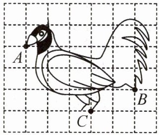 6. 褐马鸡是我国的珍稀鸟类,如图所示的是保护褐马鸡宣传牌上利用网格画出的褐马鸡的示意图.若建立适当的平面直角坐标系,表示嘴部点A的坐标为$(-3,3)$,表示尾部点B的坐标为$(2,1)$,则表示足部点C的坐标为 (