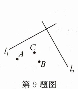 9. 如图,直线$l_{1}⊥l_{2}$,在平面直角坐标系中,$l_{1}// x$轴,$l_{2}// y$轴,点A,B的坐标分别为$(-1,1),(2,-1)$,则点C在第