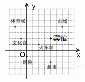 (3)若宾馆的坐标为$(4,2)$,请在图上标出宾馆所在位置.(图略)