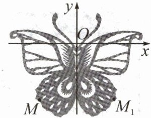 2. (2024·绵阳)蝴蝶颜色绚丽,翩翩起舞时非常美丽,深受人们喜爱,它的图案具有对称美.如图,蝴蝶图案关于$y$轴对称.点$M的对应点为M_{1}$,若点$M的坐标为(-2,-3)$,则点$M_{1}$的坐标为(