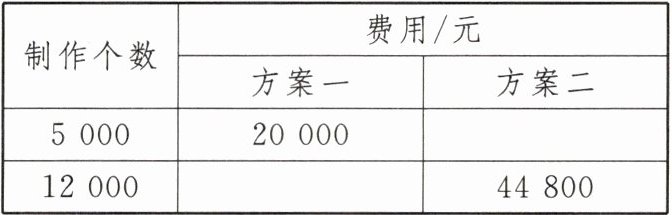 (2)方案一:$y = 4x$;方案二:$y = 2.4x + 16 000$。