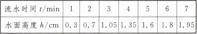 图1是学思小组制作的计时仪器,水流分别经过纸杯1,2,3最后流入纸杯4,记录了流入纸杯4的水面高度h(cm)与流水时间t(min)的关系如表1,同时又记录了水的体积V(mL)与流水时间t(min)的关系如表2.