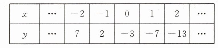 (2) 由题意可知,$ x $ 每增加 1,$ y $ 均减少 5,$ \therefore k = -5 $。$ \because $ 当 $ x = 0 $ 时,$ y = -3 $,$ \therefore b = -3 $。$ \therefore $ 这个函数的表达式为 $ y = -5x - 3 $。