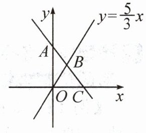 【例3】如图,在平面直角坐标系中,一次函数$y= kx+9$的图象与y轴相交于点A,与x轴相交于点C,并与直线$y= \frac {5}{3}x$相交于点B,其中点B的横坐标为3。