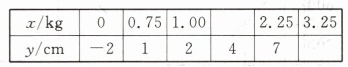 8. 新考向 传统文化 杆秤是我国传统的计重工具,如图,秤钩上所挂物体的质量不同,使得秤砣到秤纽的水平距离不同。称重时,秤钩所挂物重为 $ x(kg) $ 时,秤杆上秤砣到秤纽的水平距离为 $ y(cm) $。下表为若干次称重时所记录的一些数据,且y是x的一次函数。
