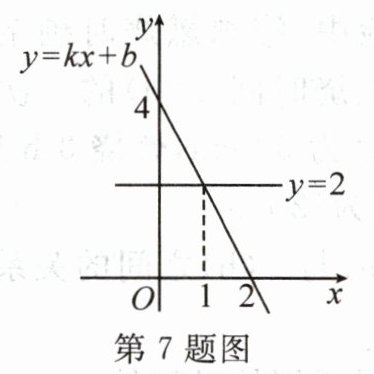 7. 已知一次函数y= kx+b的图象如图所示,利用图象解决下列问题.