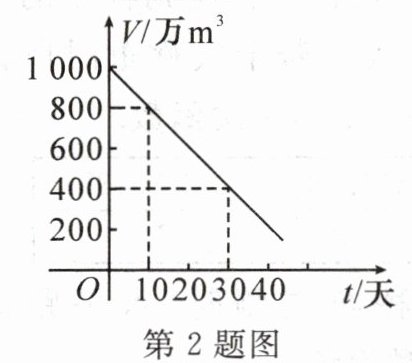 2. 由于持续高温和连日无雨,水库蓄水量普遍下降.如图所示的是某水库蓄水量V(万$m^3)$与干旱时间t(天)之间的关系图,请你根据此图填空: