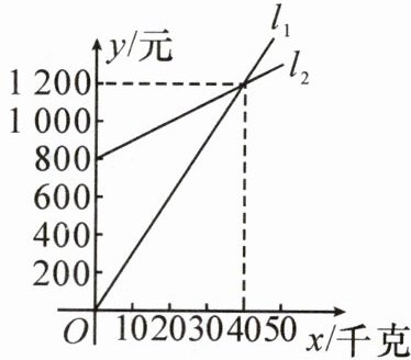 (1)设$y_{1}=k_{1}x$。根据题意,得$40k_{1}=1200$,解得$k_{1}=30$。$\therefore y_{1}=30x(x\geq0)$。设$y_{2}=k_{2}x+b$。根据题意,得$800=b$,① $1200=40k_{2}+b$。② 将①代入②,得$k_{2}=10$。$\therefore y_{2}=10x+800(x\geq0)$。 (2)一