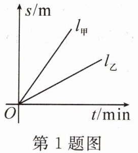 1. 如图,射线$l_{甲}$,$l_{乙}$分别表示甲、乙两名运动员在自行车比赛中所行路程$s(m)与时间t(min)$的函数图象,则他们行进的速度关系是(