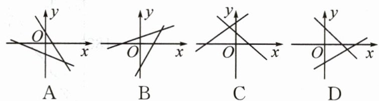 9. 若 $ kb < 0,b - k > 0 $,则函数 $ y = kx + b $ 与 $ y = bx + k $ 在同一平面直角坐标系中的图象可能是 (