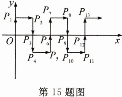 15. 如图,在平面直角坐标系中,动点P从原点O出发,沿着箭头所示方向每次移动1个单位长度,依次得到点$P_{1}(0,1),P_{2}(1,1),P_{3}(1,0),P_{4}(1,-1),P_{5}(2,-1),P_{6}(2,0)... ... 则点P_{2025}$的坐标是____.