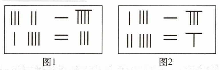 12. A|湖南师大附中校本经典题 如图所示的是《九章算术》中的算筹图,图中各行从左到右列出的算筹数分别表示未知数$x,y$的系数与相应的常数项.如图 1 所示的算筹图用方程组的形式表述出来,就是$\begin{cases}3x + 2y = 19,\\x + 4y = 23.\end{cases}$类似地,图 2 所示的算筹图可以表述为