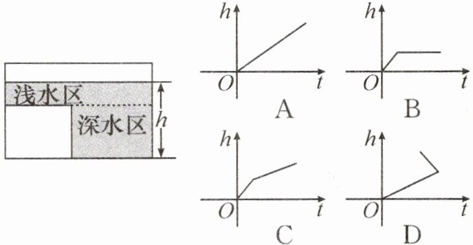 6. 如图,这是某蓄水池的横断面的示意图,分深水区和浅水区.如果向这个蓄水池中以固定的水流量(单位时间注水的体积)注水(注满水后停止注水),那么下列能大致表示水的深度 $ h $ 与注水时间 $ t $ 之间的关系的图象是()