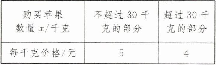 则小刚一次性购买40千克苹果所付的费用比分两次购买(每次购买20千克)所付的费用少____元.