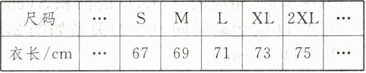 4. 某校在定制“中考红色战袍”时,小明了解到尺码与衣长的对应关系如下表: