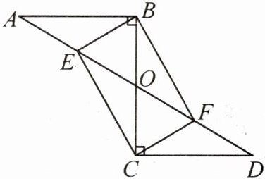 11. 如图,$AD和BC相交于点O$,$\angle ABO = \angle DCO = 90^{\circ}$,$OB = OC$,$E$,$F分别是AO$,$DO$的中点。