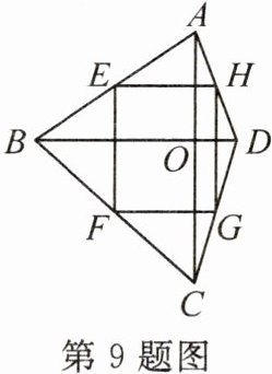 9. 如图,四边形$ABCD的对角线AC\perp BD于点O$,$E$,$F$,$G$,$H分别为边AB$,$BC$,$CD和AD$的中点,顺次连接$EF$,$FG$,$GH和HE得到四边形EFGH$。若$AC = 10$,$BD = 8$,则四边形$EFGH$的面积等于