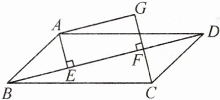 10. 如图,四边形 $ABCD$ 是平行四边形,$AE\perp BD$ 于点 $E$,$CG\perp BD$ 于点 $F$,$FG = CF$,连接 $AG$。