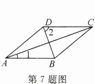 7. 如图,在菱形$ABCD$中,连接$AC$,$BD$. 若$\angle 1 = 20^{\circ}$,则$\angle 2$的度数为(