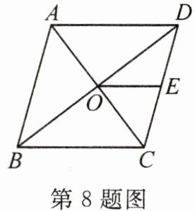8. 如图,在菱形$ABCD$中,对角线$AC$,$BD相交于点O$,$E为CD$的中点. 若$OE = 3$,则菱形$ABCD$的周长为