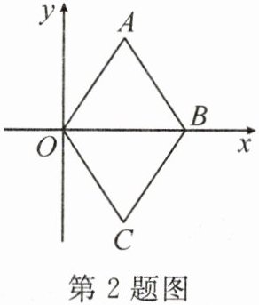 2. 如图,在菱形$OABC$中,点$B在x$轴上,点$A的坐标为(2,3)$,则点$C$的坐标为